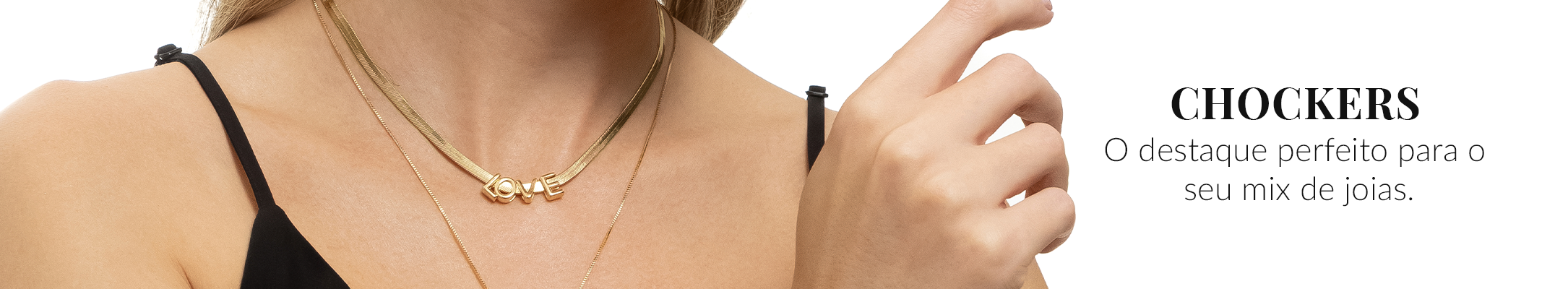 Choker Kayro LOVE com Corrente Fita Banhada em Ouro