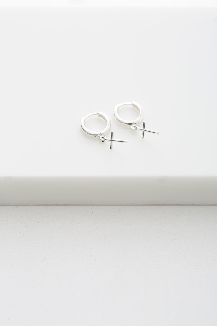 Brinco Argola com Pingente Cruz em Prata 925 – Kayro Joias