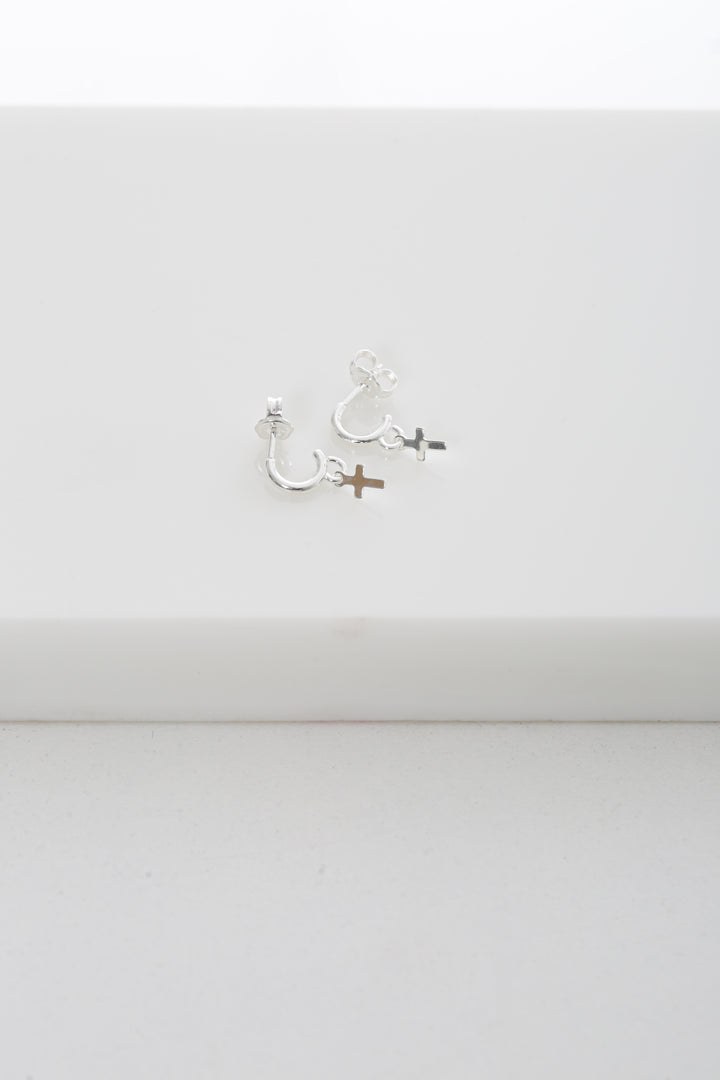 Brinco Argolinha com Mini Cruz em Prata 925 – Kayro Joias