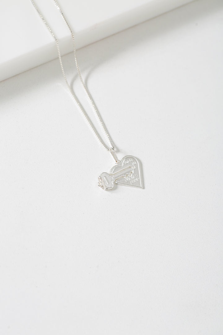 Colar Veneziana em Prata 925 com Pingente Coração e Chave 23x24mm – Kayro Joias