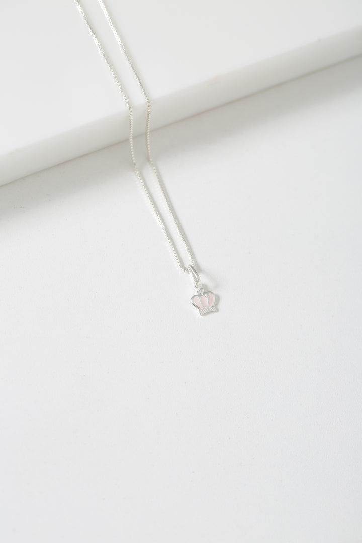 Delicado e cheio de charme, este colar Kayro em prata 925 traz um pingente de coroa esmaltada em rosa, símbolo de realeza, poder e elegância. Uma joia graciosa que transmite feminilidade e sofisticação, perfeita para quem gosta de detalhes sutis, mas cheios de significado.