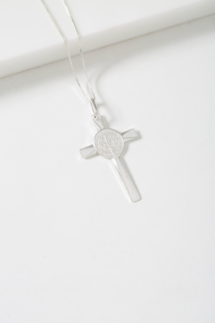 Colar Veneziana em Prata 925 com Pingente Cruz de São Bento – Kayro Joias