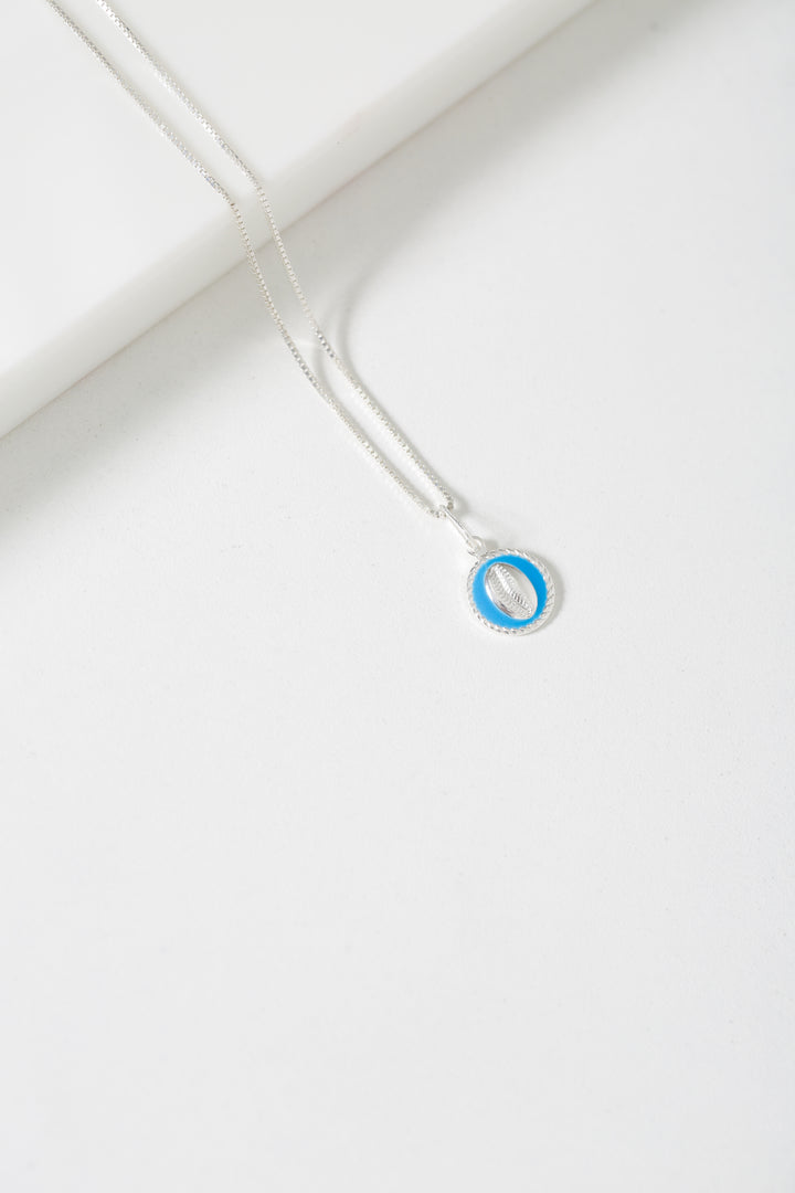 O búzio é um símbolo ligado à prosperidade, proteção e à energia do mar. Este colar Kayro em prata 925 traz um pingente redondo esmaltado em azul com o búzio em destaque, evocando espiritualidade e conexão com a natureza.