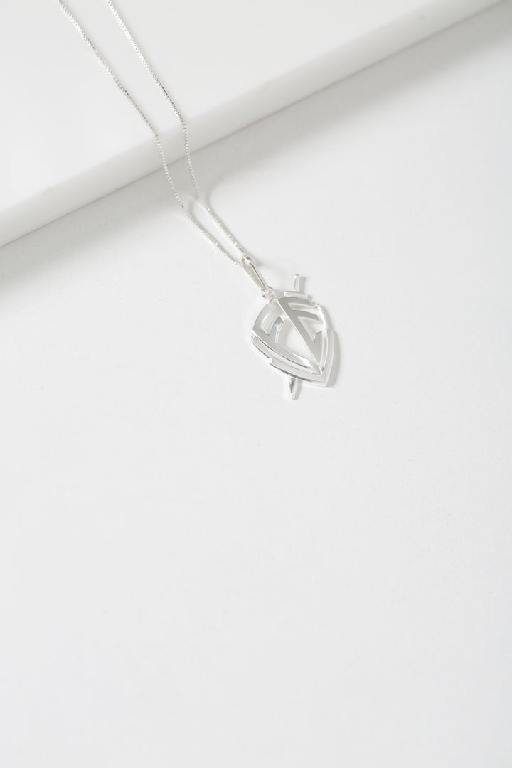 Força e fé representadas em uma joia única. O Colar Veneziana Kayro em prata 925 traz um pingente em formato de escudo com espada, símbolo de coragem, proteção e determinação.