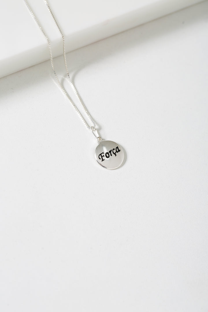 A palavra Força carrega consigo energia, superação e resiliência. Este colar Kayro, em prata 925, traz um pingente redondo gravado com a palavra Força, representando coragem e determinação para enfrentar todos os desafios da vida.