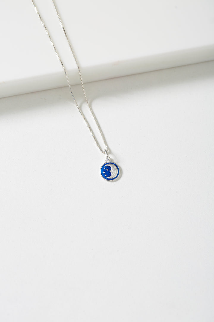 Colar Veneziana em Prata 925 com Pingente Lua e Estrelas Azul 11x11mm – Kayro Joias Adicionar à Lista de Desejos