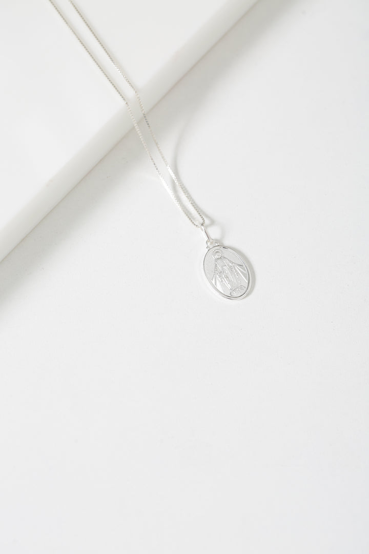 Devoção e proteção em forma de joia. O Colar Veneziana Kayro em prata 925 traz um pingente oval de Nossa Senhora, em dimensões de 15mm x 29mm. Um símbolo de fé mariana que transmite confiança, esperança e amparo espiritual, tornando-se um amuleto especial para o dia a dia.