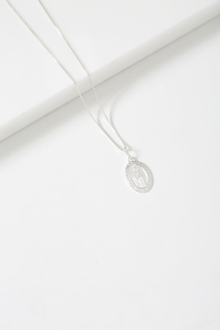 Um símbolo de fé e devoção em joia atemporal. O Colar Veneziana Kayro em prata 925 traz o pingente oval da Medalha de Santa Isabel, em dimensões de 18mm x 25mm. Representando espiritualidade, intercessão e confiança, esta joia é um amuleto de proteção e inspiração para o dia a dia.