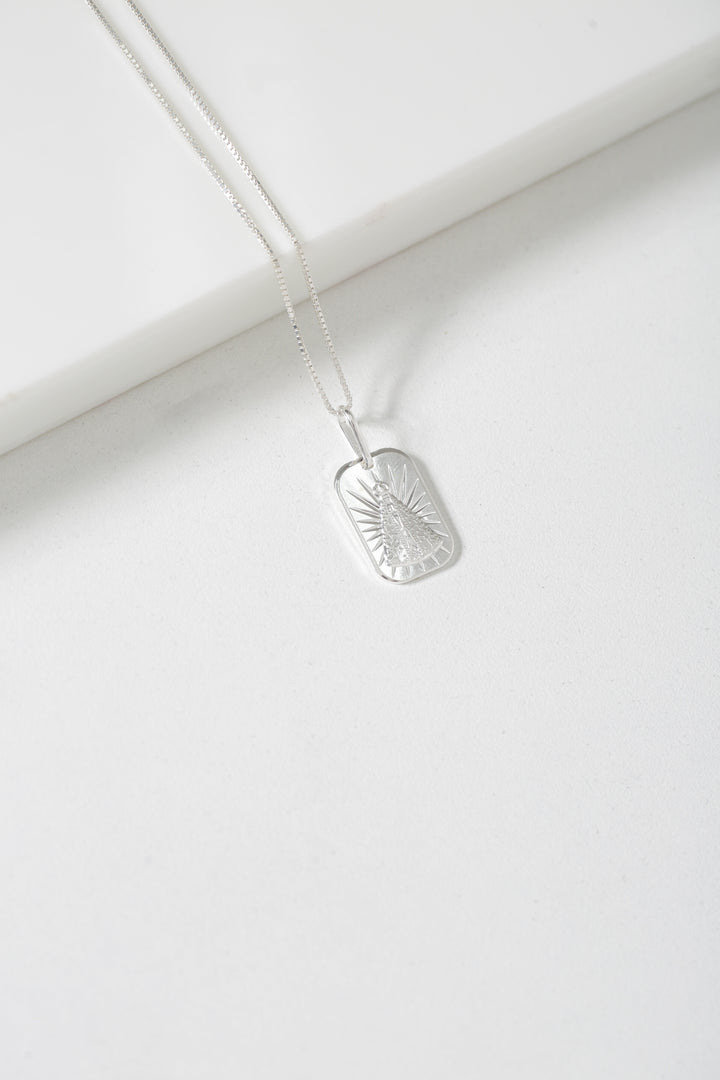 Colar Veneziana em Prata 925 com Pingente Nossa Senhora Aparecida Retangular 13x29mm – Kayro Joias