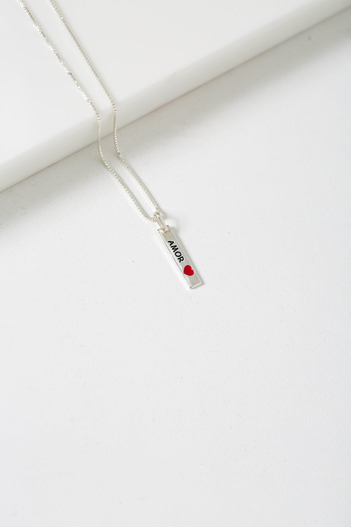 O Amor é um dos sentimentos mais nobres e universais, simbolizando união, carinho e afeto. Este colar Kayro em prata 925 traz um pingente retangular com a palavra “Amor” e um delicado coração em vermelho, transmitindo emoção e intensidade em cada detalhe.
