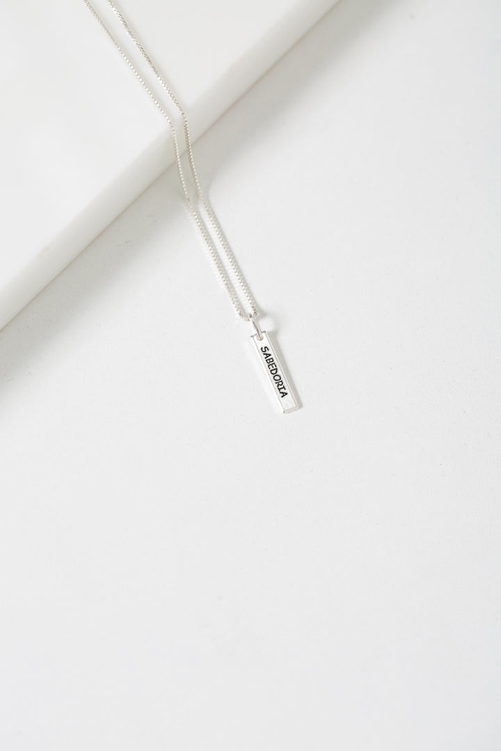 A Sabedoria é a chave para o equilíbrio e para escolhas conscientes. Este colar Kayro em prata 925 traz um pingente retangular delicado, com a palavra “Sabedoria” gravada, simbolizando conhecimento, clareza e discernimento.