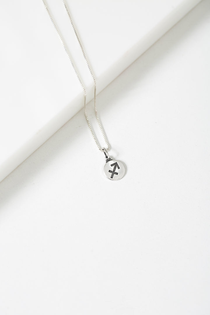 O signo de Sagitário simboliza liberdade, otimismo e busca por novos horizontes. Este colar Kayro em prata 925 traz um pingente redondo com o símbolo do signo de Sagitário, perfeito para quem deseja expressar sua energia aventureira e expansiva.